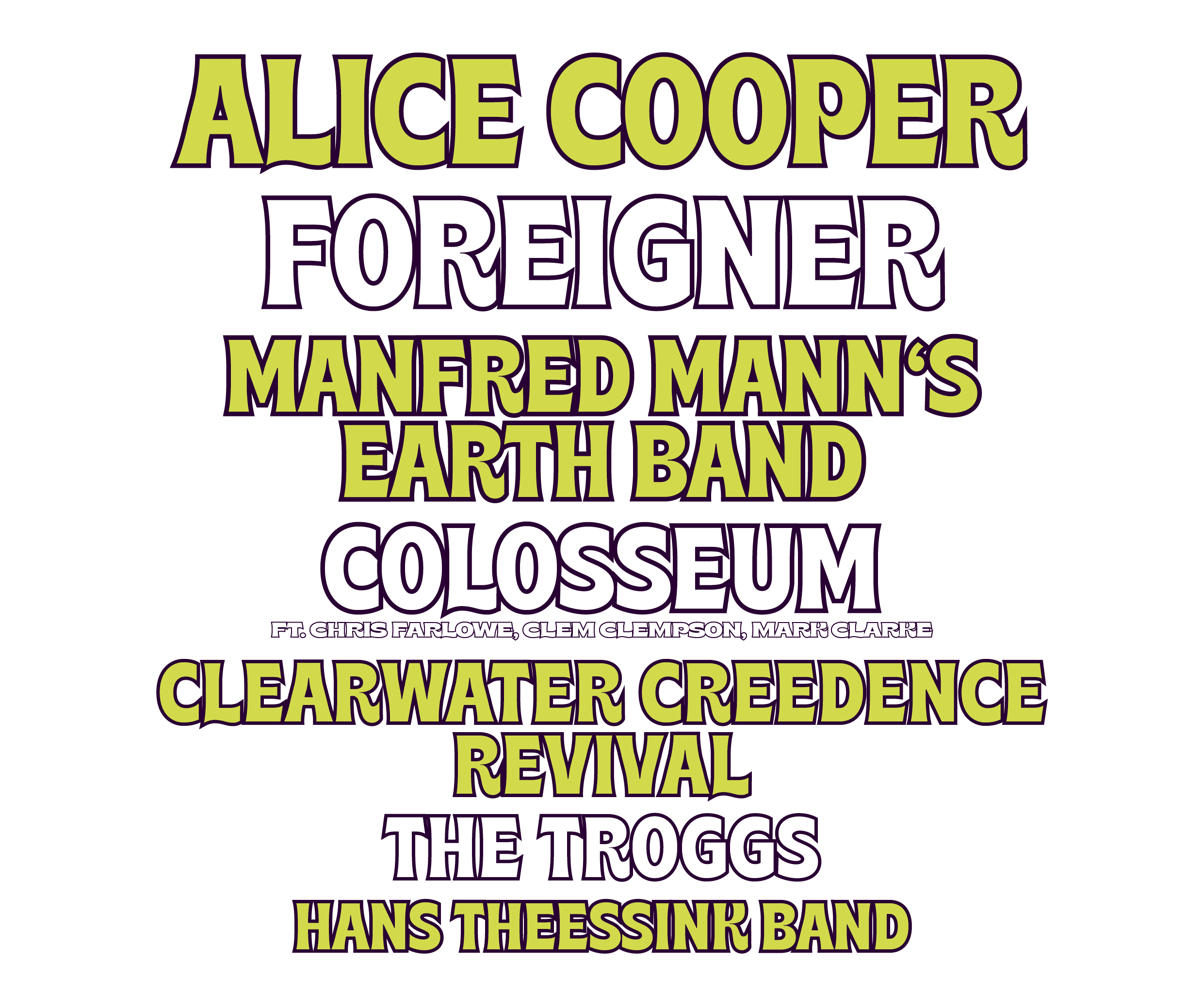 Der Sommer 2026 bringt wieder das Beste aus Classic Rock und Blues auf die Bühne: der „godfather of shock rock“ ALICE COOPER ist Headliner, ein Hitfeuerwerk vom Feinsten liefern FOREIGNER mit ihren legendären Klassikern wie „I Want to Know What Love Is“ und „Cold as Ice“. Mit MANFRED MANN’S EARTH BAND geht es hochkarätig weiter, wenn es wieder heißt „Blinded by the Light“. Die britische Blues- und Jazzrockband COLOSSEUM ist auch am Start und mit dabei sind Chris Farlowe (lead vocals), Clem Clempson (guitars & vocals) und Mark Clarke (bass & vocals), die schon seit 1969 / 1970 Teil der Band sind. Bei der kultigen Coverband CLEARWATER CREEDENCE REVIVAL ist es unmöglich nicht mitzugrooven und zu tanzen. Neuestes „Wild Thing“ im Line-Up ist die britische Garage Rock-Band THE TROGGS. Den musikalischen Start machen HANS THEESSINK & BAND mit gefühlvoller Blues & Roots-Musik auf hohem emotionalen und technischen Niveau. Freut euch auf musikalische Vielfalt im Schlosspark Esterházy!